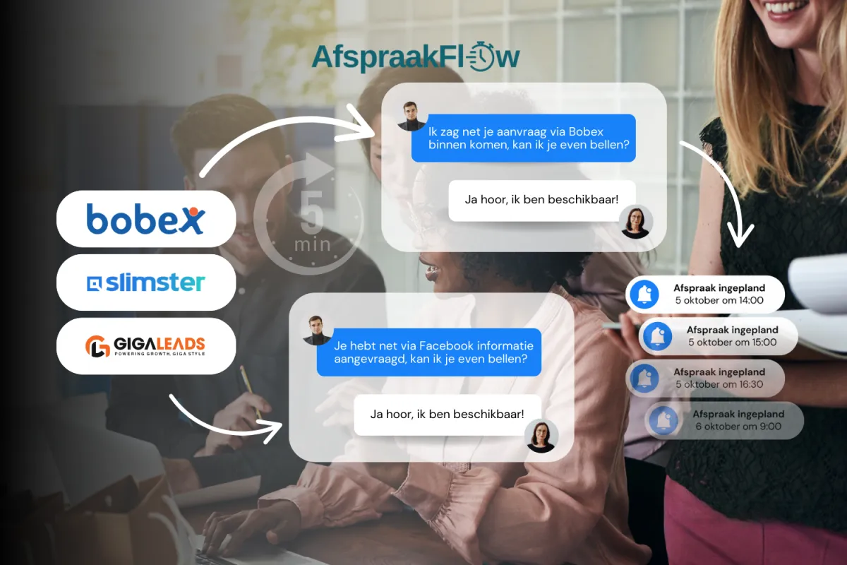 AfspraakFlow is er voor serieuze MKB bedrijven die minimaal 100 leads per maand krijgen en weten dat er meer uit te halen valt met snelle en professionele opvolging.